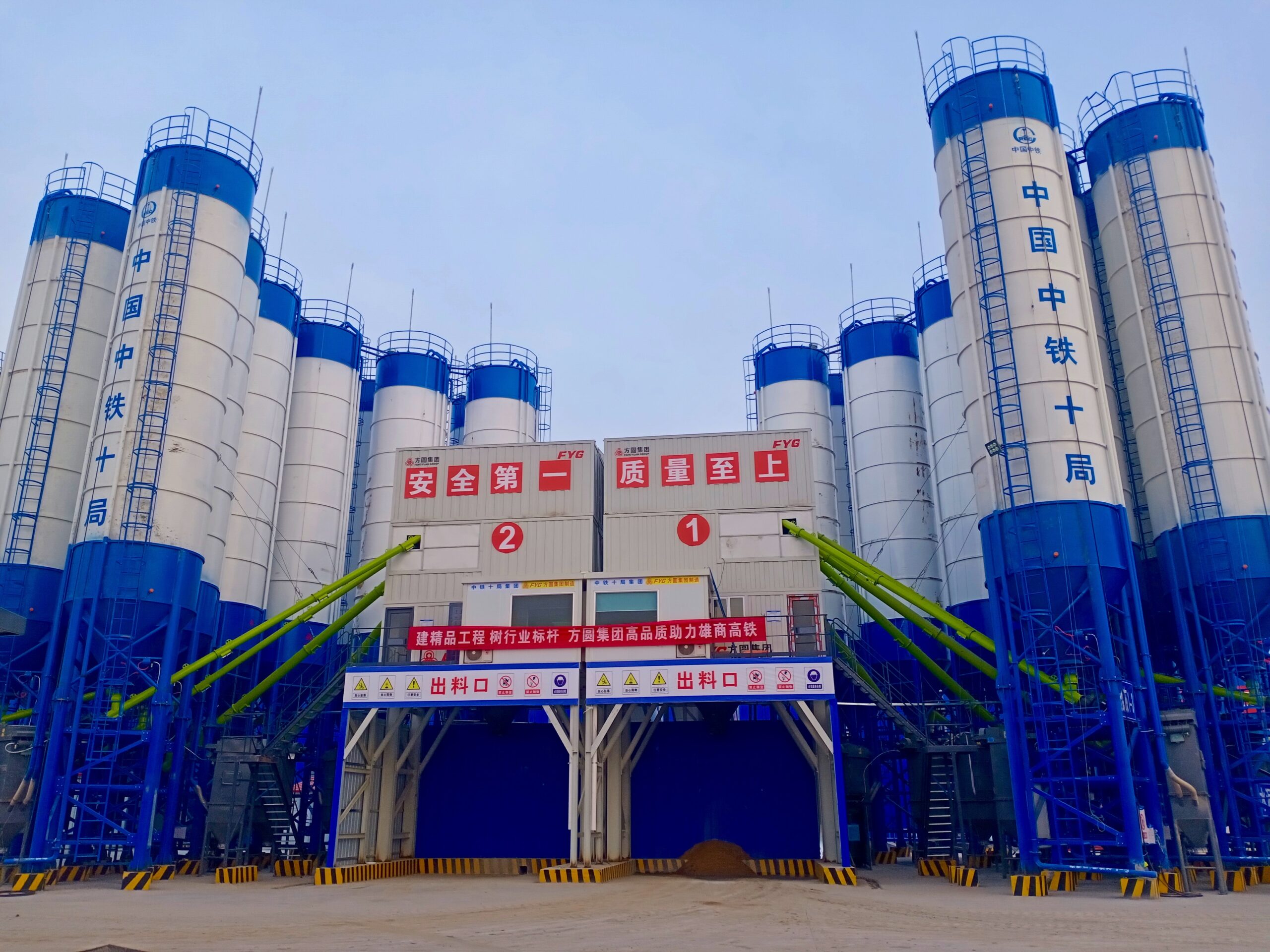 April 15, 2021 Multiple FYG HZS180 modular container-design mixing plants have been commissioned in Heze, Shandong Province, to support the construction of the Xiongshang high-speed railway.The Xiongshang high-speed railway project has a total length of 552.547 km,with a design speed of 350 km/h, a total investment of 81.08 billion yuan, and the construction period of 4 years.